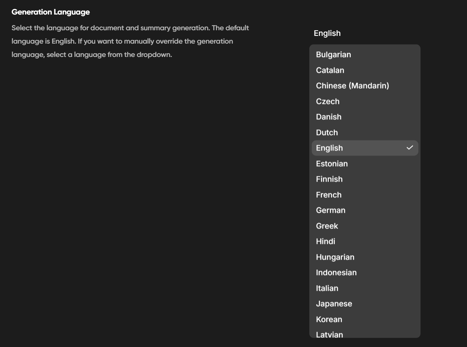 To get started, users simply need to navigate to their settings and select their preferred language for transcripts and generated content including Summaries. This intuitive setup allows users to customize their experience with just a few clicks.